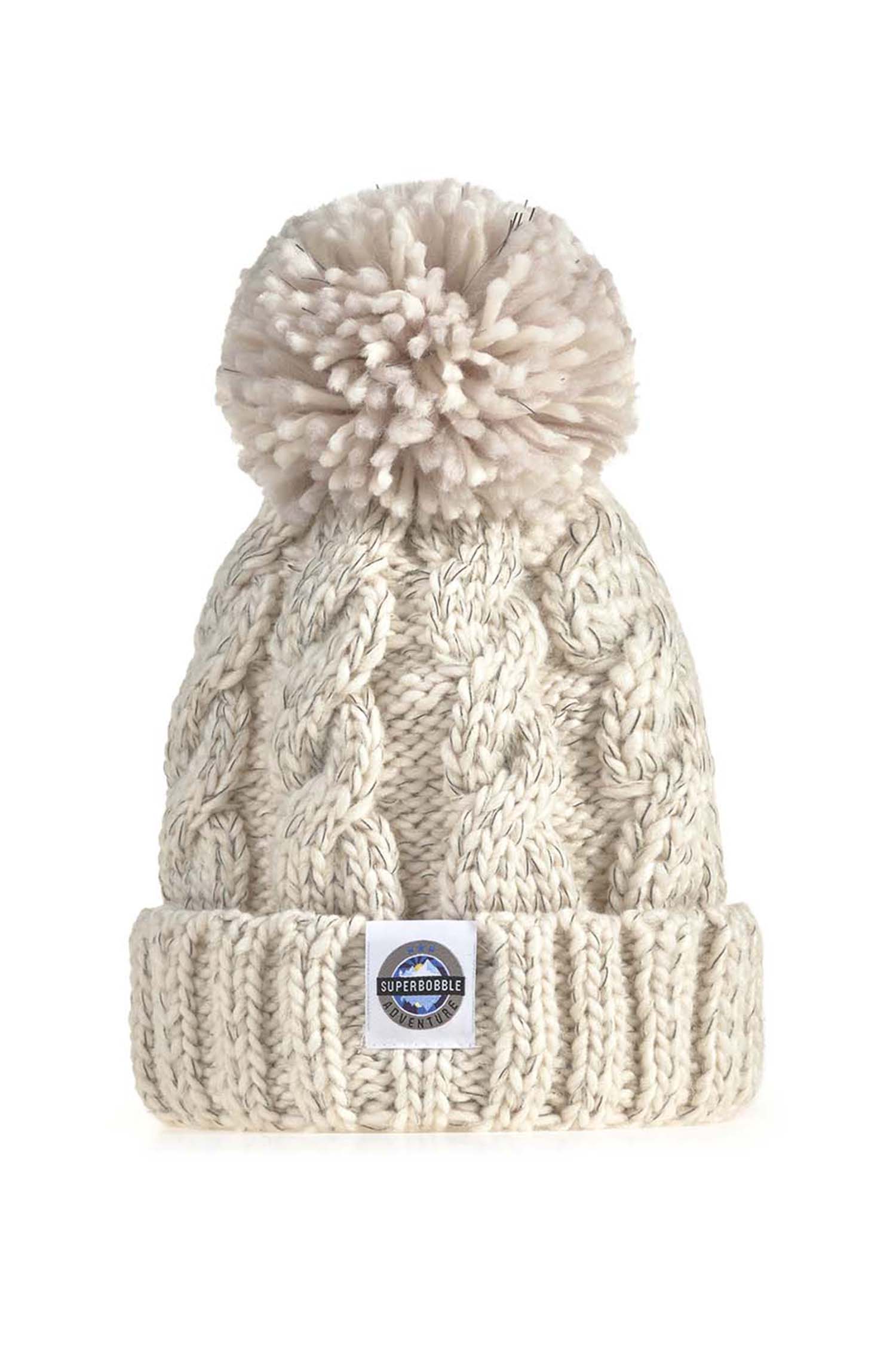 Unisex cable knit design SuperBobble hat with reflective yarns throughout with a luxury sherpa fleece lining. A classic cable knit SuperBobble hat in a beautiful pale oatmeal and cream design.The SuperBobble bobble hat is not your average winter accessory; it’s the epitome of comfort, warmth, and style. Crafted with the finest materials, this hat features a luxurious sherpa lining, providing an unparalleled softness and insulation against the cold with the added benefit of reflective yarn to the headband and pom pom. The exterior boasts a classic bobble design, adding a playful touch to its practicality. Whether you're hitting the slopes, dog walking or strolling through the city streets, the Superbobble bobble hat ensures you stay cozy and chic wherever you go. |
