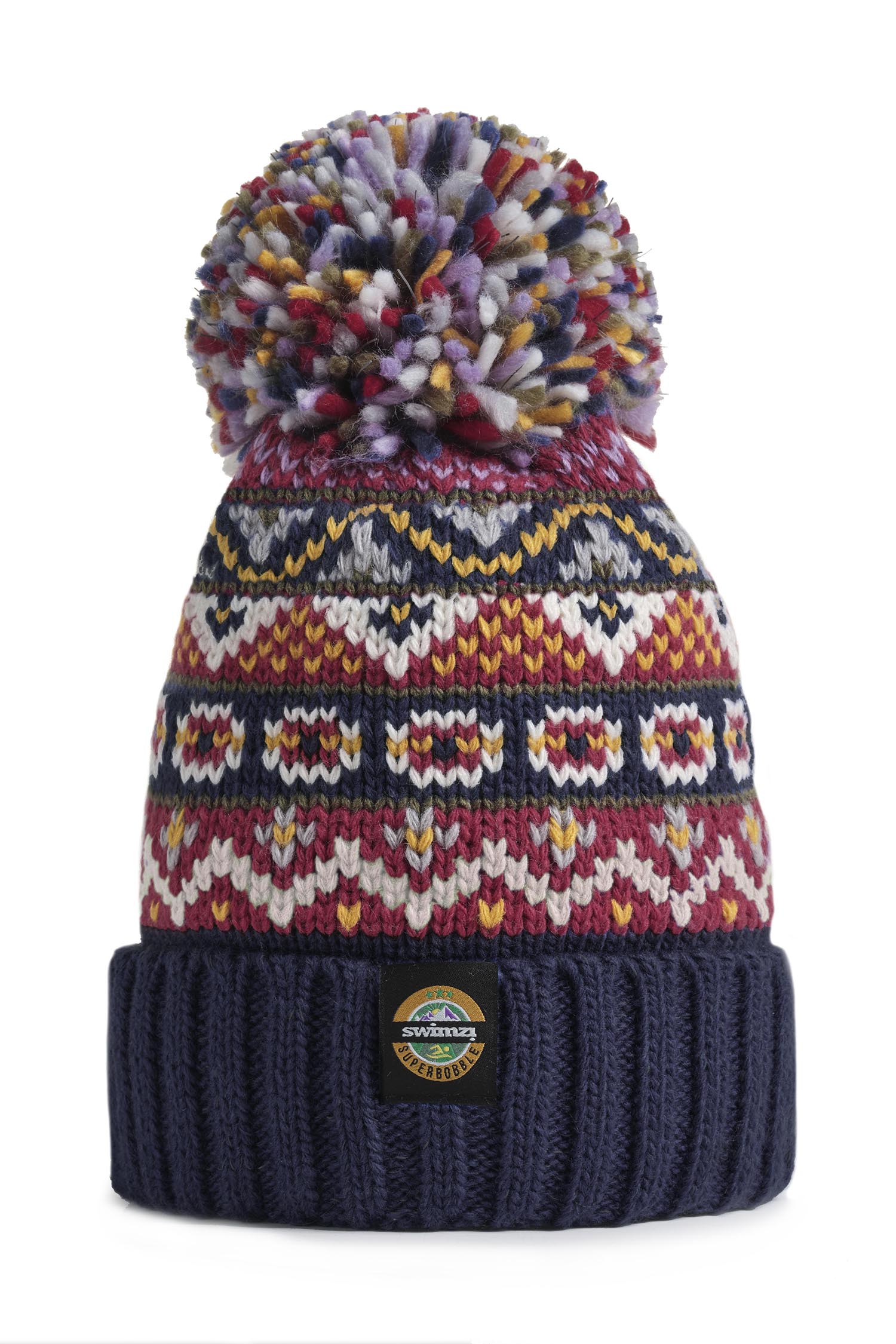 Fairisle style knit beanie with pom-pom. A classic 1930's British Fairisle design using traditional deep navy, cherry with accents of mustard, winter grey and cream.The SuperBobble bobble hat is not your average winter accessory; it’s the epitome of comfort, warmth, and style. Crafted with the finest materials, this hat features a luxurious sherpa lining, providing an unparalleled softness and insulation against the cold with the added benefit of reflective yarn to the headband and pom pom. The exterior boasts a classic bobble design, adding a playful touch to its practicality. Whether you're hitting the slopes, dog walking or strolling through the city streets, the SuperBobble bobble hat ensures you stay cozy and chic wherever you go. |